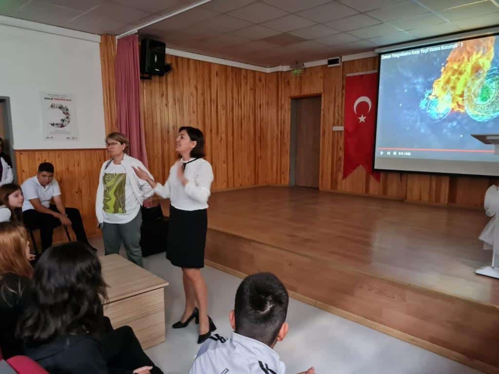 İLK DERSİMİZDE ÖĞRENCİLERİMİZE BAKANLIĞIMIZCA TAVSİYE EDİLEN ORMAN YANGINLARINA KARŞI YEŞİL VATANI KORUMA KONULU SLAYT VE VİDEO GÖSTERİMİ YAPILDI.